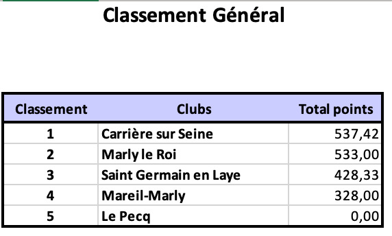 Trophée de la Boucle 1ère partie résultats 2026 général adulte